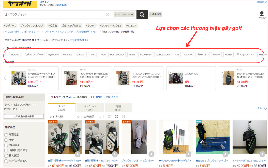 Các trang web Nhật bán gậy golf và dụng cụ chơi golf Yahoo auction. Giúp bạn sở hữu ngay những bộ gậy golf chuẩn nội địa Nhật đến từ các thương hiệu đắt đỏ với mức giá “hạt dẻ” đơn giản hơn bao giờ hết khi mua đấu giá tại Yahoo Auctions là trang TMĐT chuyên mua bán các sản phẩm đồ cũ theo hình thức đấu giá trực tuyến, bao gồm đa dạng sản phẩm liên quan đến Golf như: gậy golf, túi đựng, trang phục, giày chơi golf,... Với hình thức mua hàng độc đáo, khách hàng có cơ hội mua được những bộ gậy golf chất lượng giá cực rẻ. Do vậy, không ít khách hàng đã lựa chọn Yahoo Auctions là nơi tìm kiếm mua sử dụng và nhập hàng về Việt Nam kinh doanh. 2. Golf Partner là một trang web thương mại điện tử chuyên cung cấp các sản phẩm và dịch vụ liên quan đến môn thể thao golf. Website này cung cấp đầy đủ các loại sản phẩm golf từ gậy golf, bóng golf, túi golf, giày golf, phụ kiện golf đến quần áo và trang thiết bị cho các trận đấu golf. Ngoài ra trang web cũng cung cấp các địa chỉ cửa hàng cụ thể bạn có thể nhờ chúng tôi thu gom hàng tại các địa chỉ cửa hàng này để nhập về kinh doanh. J Golf là một trang web bán hàng golf cũ có tiếng tại Nhật Bản, cung cấp các sản phẩm golf cũ từ các thương hiệu nổi tiếng như Mizuno, Honma, Titleist, TaylorMade, Callaway, Srixon, và Bridgestone. Bên cạnh đó, J-Golf cũng cung cấp thông tin về các sự kiện và giải đấu golf tại Nhật Bản và trên thế giới, giúp người chơi golf có thêm thông tin và trải nghiệm về môn thể thao này. Địa chỉ tiếp theo mà bạn có thể mua trực tiếp gậy golf và các sản phẩm chơi golf cũ khác chính là Mercari. Đây là trang TMĐT đồ cũ “mua thẳng” và có thể trả giá trực tiếp với người bán. Nếu như bạn không có nhiều thời gian để canh đấu giá gậy golf tại Yahoo Auctions thì có thể mua nhanh chóng tại Mercari với vô vàn những sản phẩm gậy golf hàng hiệu chất lượng. 5. Các thương hiệu gậy golf nội địa Nhật bán chạy nhất tại Việt Nam dùng 5 công cụ tìm kiếm sản phẩm theo hướng dẫn ở đây nhé Gậy golf Nhật Tsuruya. Thương hiệu gậy golf Honma. Thương hiệu gậy golf Mizuno. Thương hiệu gậy golf Grand Prix. Gậy golf Nhật Katana. Thương hiệu gậy golf XXIO. Thương hiệu gậy golf Nhật Miura Ngoài gậy golf ra bạn có thể tìm nhiều phụ kiện như túi golf, máy ngắm, đo, găng tay, mũ, quần áo, giầy dép cho môn thể thao golf tại các trang web trên bạn nhé.